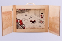 Kartonowe plansze z obrazkami opowiadają historię, a każda plansza przedstawia kolejny fragment opowieści. Parawan stoi zwrócony do publiczności, czytający/opowiadający stoi z boku lub z tyłu i czyta opowieść, zmieniając płynnie plansze.