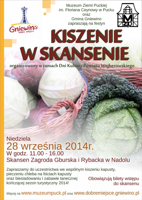 W ramach Dni Kultury Powiatu Wejherowskiego 28 września w godzinach od 11:00 do 16:00 odbędzie się festyn pod nazwą „Kiszenie Kapusty” Każdy, kto tego dnia będzie w skansenie będzie mógł wziąć udział w tradycyjnym kiszeniu kapusty, pieczeniu chleba na liściach kapusty, oraz biesiadowaniu i zabawie tanecznej. Impreza kończy sezon turystyczny 2014.
