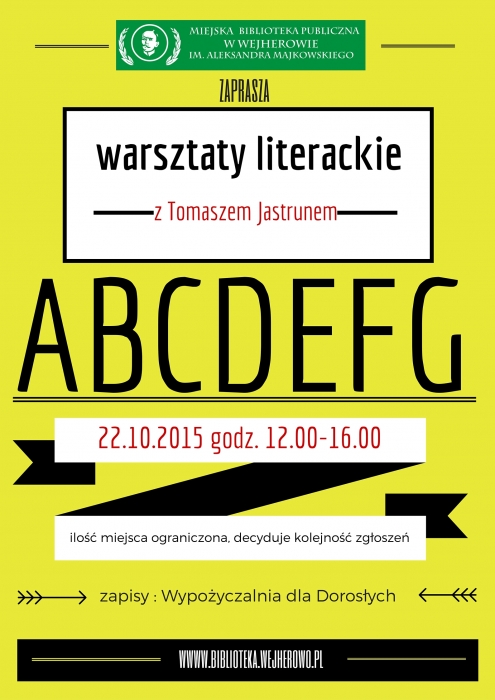 Jak informuje Miejska Biblioteka Publiczna w Wejherowie, zostały ostatnie miejsca na warsztaty literackie z Tomaszem Jastrunem. Chętnych zapraszamy do zapisów w Wypożyczalni dla Dorosłych.