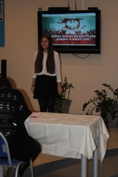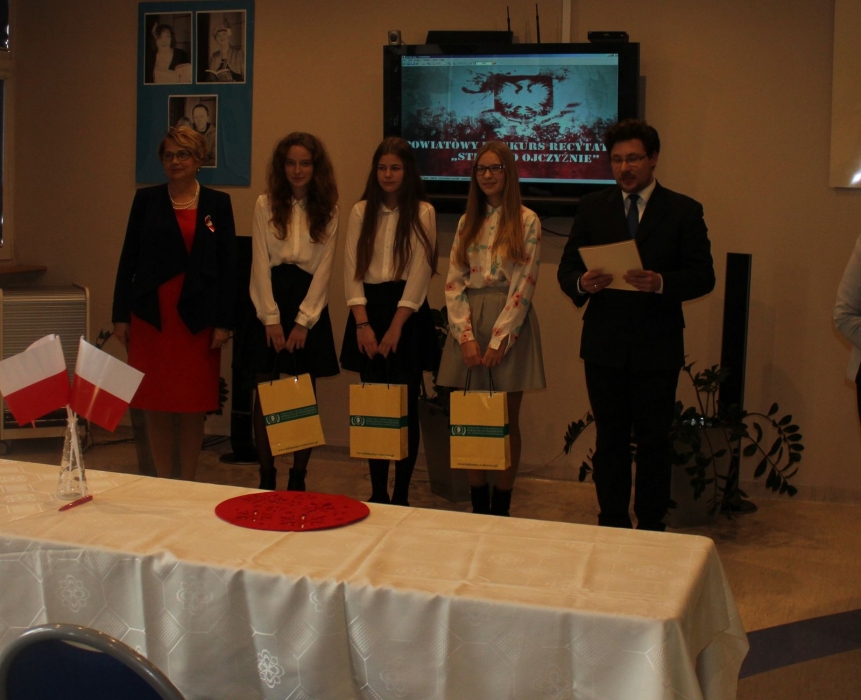 Na zakończenie uroczystości dyrektor Miejskiej Biblioteki Publicznej Danuta Balcerowicz podziękowała nauczycielom przygotowującym uczniów do konkursu i zaprosiła do udziału w kolejnej edycji "Strof o Ojczyźnie" już za rok.