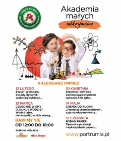 Pierwsze spotkanie w ramach cyklu "Akademia Małych Odkrywców" odbędzie się w sobotę 13 lutego w Porcie Rumia Centrum Handlowym Auchan przy ulicy Grunwaldzkiej 108 w Rumi. Zajęcia rozpoczną się o godzinie 12:00 i potrwają do godziny 18:00.