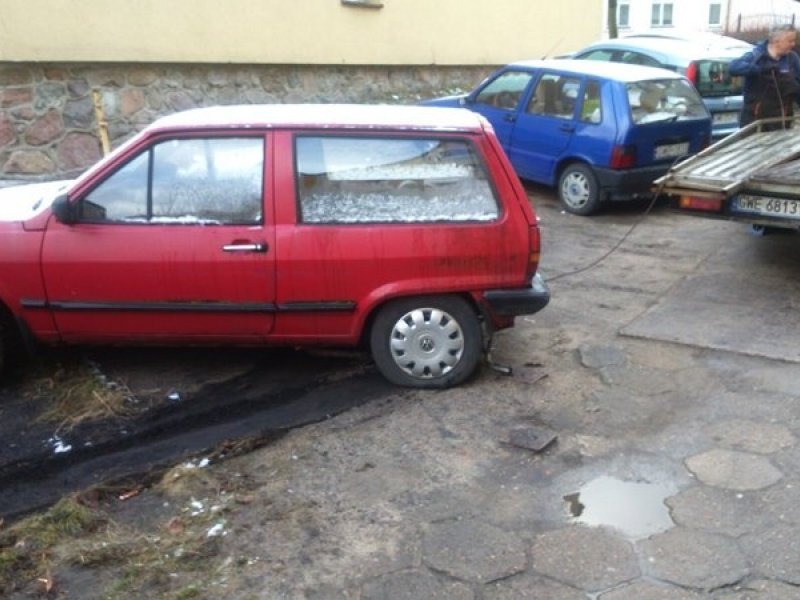Kolejny niszczejący samochód został usunięty z wejherowskiego parkingu. Straż Miejska na bieżąco kontroluje ulice i parkingi wyławiając opuszczone pojazdy które opuszczone przez właścicieli niszczeją zajmując miejsce parkingowe.