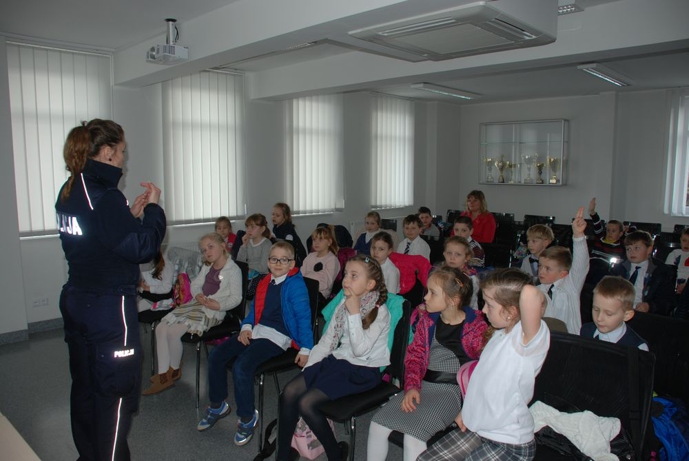 Mali goście zwiedzili komendę i mieli okazję z bliska przyjrzeć się jak wygląda praca policjanta. Dzieci z dużym zainteresowaniem wypytywały o szczegóły pracy funkcjonariuszy, a policjanci opowiadali na czym polega codzienna służba.