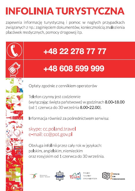 Ruszył Telefon Bezpieczeństwa dla turystów, który w tym roku został po raz pierwszy zintegrowany z Polskim Systemem Informacji Turystycznej. Od października do maja, w godzinach 8:00-18:00, a od 1 czerwca do 30 września, w godzinach 8:00-20:00, turyści polscy i zagraniczni będą mogli uzyskać potrzebne informacje oraz pomoc w sytuacjach wymagających specjalistycznej porady.