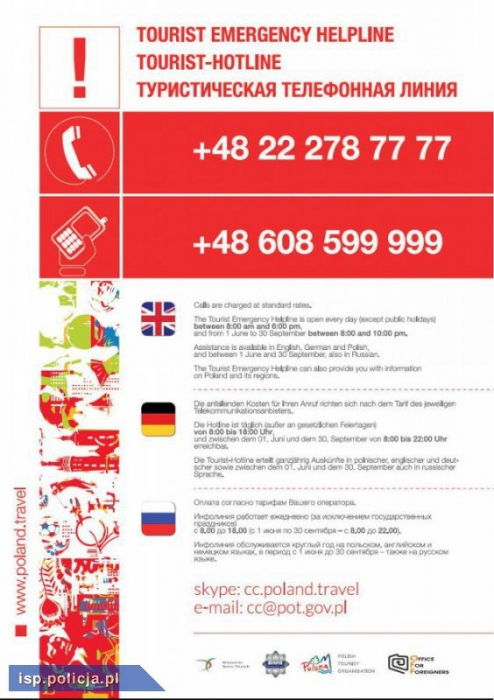 Akcja "Telefon Bezpieczeństwa" realizowana jest cyklicznie od 2002 roku. Ta wspólna inicjatywa Ministerstwa Sportu i Turystyki, Urzędu do Spraw Cudzoziemców, Polskiej Organizacji Turystycznej i Policji to również element kształtowania wizerunku Polski, jako kraju otwartego i przyjaznego podróżnym, eksponująca dbałość służb publicznych o zagranicznych globtroterów.