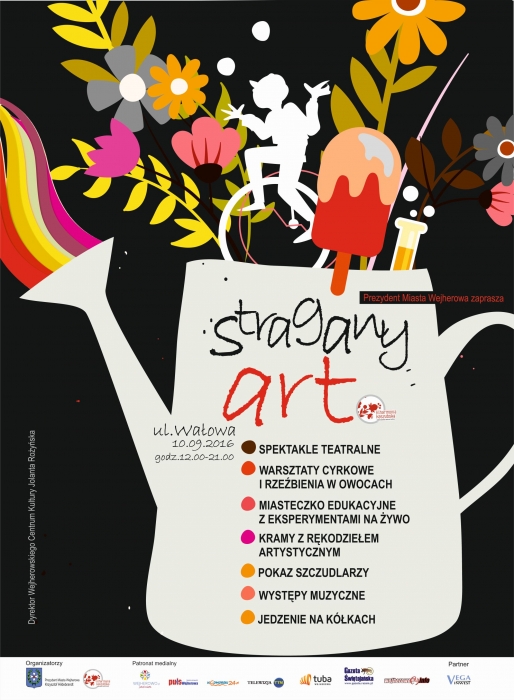 Stragany Art odbędą się w sobotę 10 września 2016 r. w godz. 12:00 - 21:00 na ul. Wałowej w Wejherowie, a wstęp jest bezpłatny. W związku z organizacją wydarzenia od godziny 8:00 do godziny 24:00 fragment ulicy Wałowej od strony zjazdu z ul. Sobieskiego (deptaku) do ulicy Północnej będzie zamknięty dla ruchu kołowego.