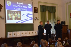 Podczas spotkania z uczniami funkcjonariusze wyjaśnili jak powinno się dbać o swoją widoczność przy drodze i jak mogą w tym pomóc umocowane do plecaka, tornistra lub bezpośrednio na odzieży elementy odblaskowe.