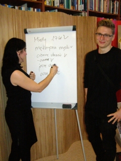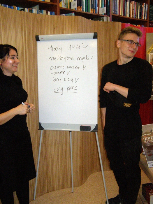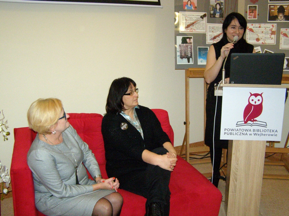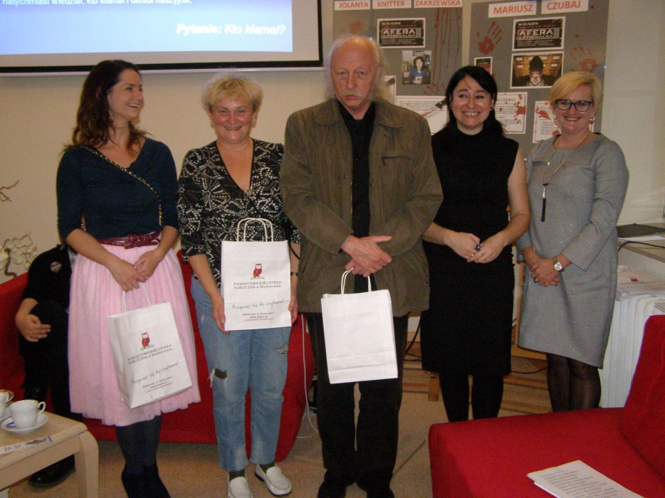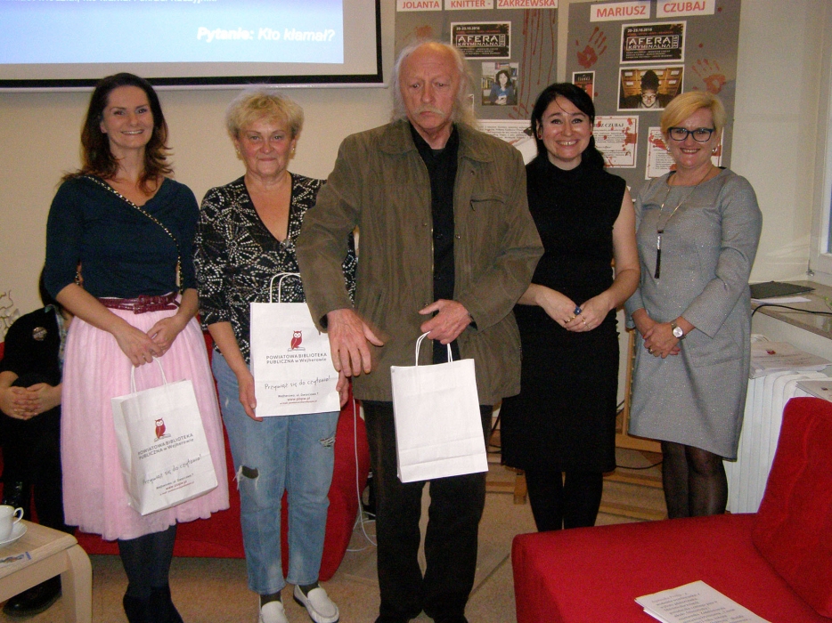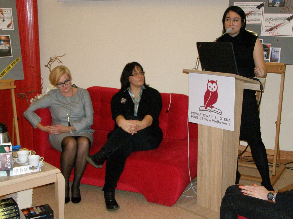 Spotkanie w Bibliotece autorka urozmaiciła zagadkami kryminalnymi, do rozwiązywania których zaproszono gości, a ci, którzy najbardziej przyczynili się do ich rozwiązania, w nagrodę otrzymali książkę z autografem Autorki.