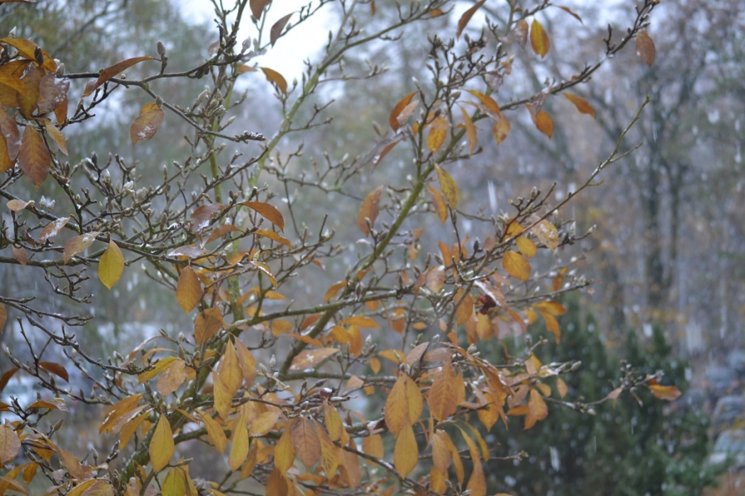 Mówi się, że pierwszy śnieg szybko topnieje. Tak rzeczywiście było. Duże płatki śniegu lecące z nieba dziś o poranku były pewnym zaskoczeniem. Nie utrzymały się długo. Na zewnątrz nie jest wprawdzie zbyt ciepło, lecz w ciągu dnia temperatury są dodatnie. Co innego w nocy. Mieliśmy już kilka przymrozków.