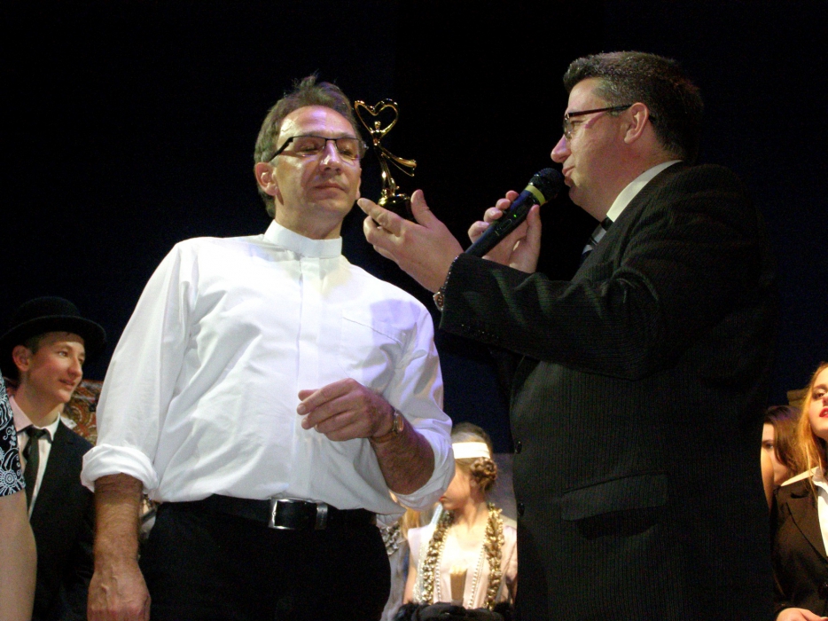 Po spektaklu, Waldemar Szczypior wręczył ks. Dunajskiemu pamiątkową statuetkę a członkowie teatru otrzymali drobne upominki. Dodajmy, że twórca spektaklu, ks. Jarosław Dunajski, obecny proboszcz parafii p.w. Matki Boskiej Częstochowskiej w Tuchlinie, w latach 1992 – 1996 r. był wikarym w parafii gniewińskiej.