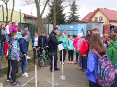 Uczestnicy rozwiązywali test z zakresu wiedzy o ruchu drogowym, a następnie pokonywali specjalnie przygotowany tor przeszkód. W ocenie funkcjonariuszy, dzieci wykazały się bardzo dobrą znajomością przepisów i z dużym zaangażowaniem pokonywały rowerem wyznaczony tor przeszkód.