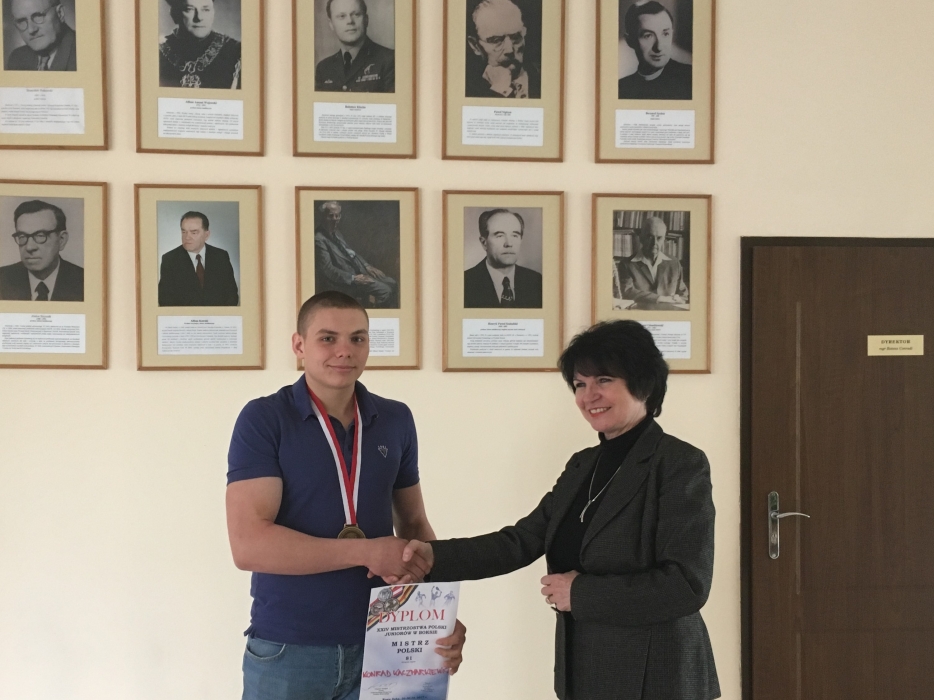 Konrad Kaczmarkiewicz, uczeń drugiej klasy I LO im. króla Jana III Sobieskiego w Wejherowie został Mistrzem Polski Juniorów w boksie. W finałowej walce pokonał przed czasem swojego przeciwnika i w pięknym stylu sięgnął "złoto".