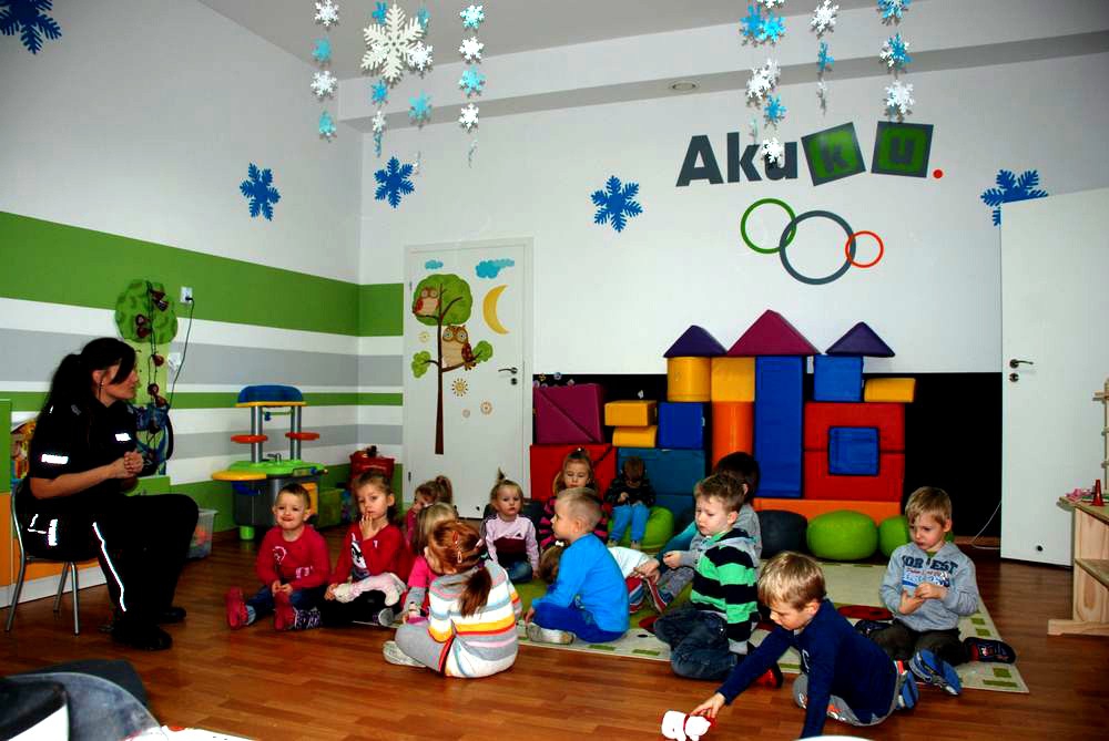 Policjantki z Komendy Powiatowej Policji w Wejherowie odwiedziły dzieci w przedszkolu "AKUKU" w Wejherowie opowiadając im o bezpieczeństwie w domu i poza domem.