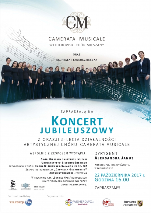 Z okazji 5-lecia swojej działalności Chór Mieszany "Camerata Musicale" przygotował specjalny jubileuszowy koncert, który odbędzie się w niedzielę 22 października br. o godzinie 16:00 w wejherowskiej Kolegiacie (kościół p.w. Świętej Trójcy).