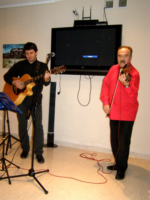 Spotkanie uświetnił koncert w wykonaniu duetu gitarowo-skrzypcowego i wokalnego - Rafał Rombca i Leszek Bolibok, członków grupy "FUCUS" a zakończył je słodki poczęstunek.