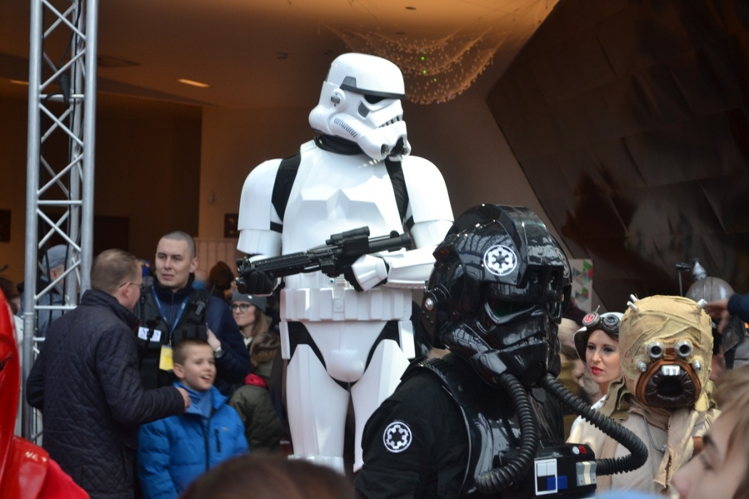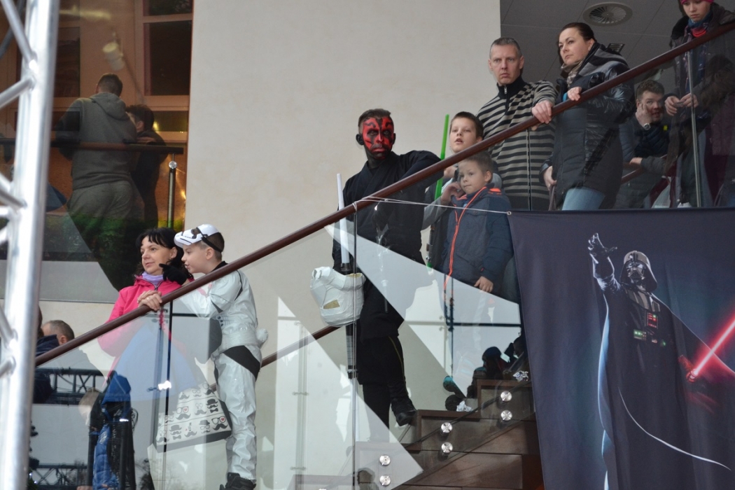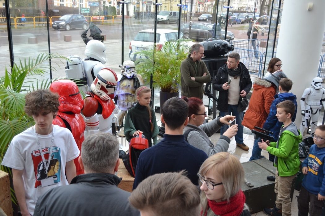 Barwna i głośna kawalkada, na czele której kroczył prezydent Wejherowa Krzysztof Hildebrandt w otoczeniu szturmowców Imperium, dumnie wkroczyła do Filharmonii Kaszubskiej, gdzie odbywały się główne imprezy zlotu fanów Gwiezdnych Wojen. Jak rok temu, najwięcej osób było zainteresowanych zrobieniem sobie pamiątkowego zdjęcia z postaciami znanymi z filmów z serii Gwiezdne Wojny.
