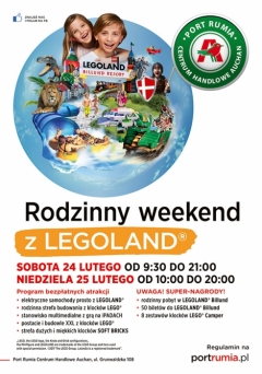 Spotkanie z atrakcjami LEGOLAND® odbędzie się w Porcie Rumia Centrum Handlowym Auchan przy ulicy Grunwaldzkiej 108 w Rumi. Zabawa odbędzie się 24 lutego w godzinach 9:30 – 21.00 oraz 25 lutego w godzinach 10:00 – 20.00. Udział we wszystkich atrakcjach jest bezpłatny.