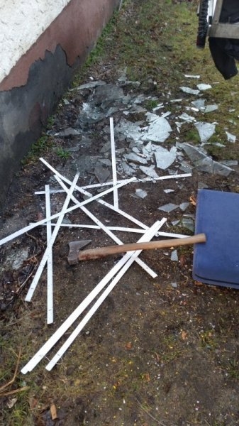Zatrzymany szaleniec zdemolował wcześniej swoje mieszkanie. Siekierą niszczył meble i wyposażenie. Poważnie uszkodził także okno przez które wyrzucił butle gazową. Na szczęście w zdarzeniu nie ucierpiały żadne osoby trzecie.