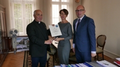 Umowę podpisali: zastępca prezydenta Wejherowa Beata Rutkiewicz i proboszcz parafii p.w. Świętej Trójcy ks. Prałat Tadeusz Reszka.