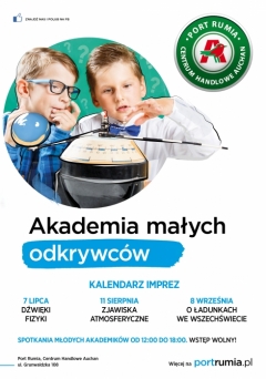 Spotkanie z cyklu "Akademia Małych Odkrywców" odbędzie się 11 sierpnia w Porcie Rumia Centrum Handlowym Auchan przy ulicy Grunwaldzkiej 108 w Rumi. Zajęcia będą prowadzone od godziny 12:00 do 18:00. Wstęp bezpłatny.