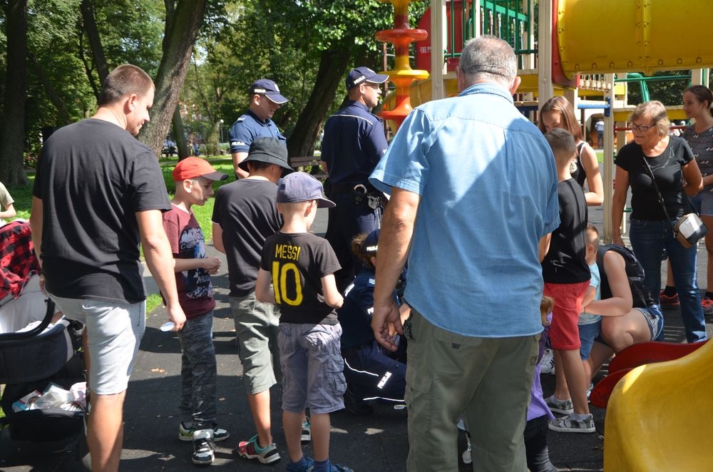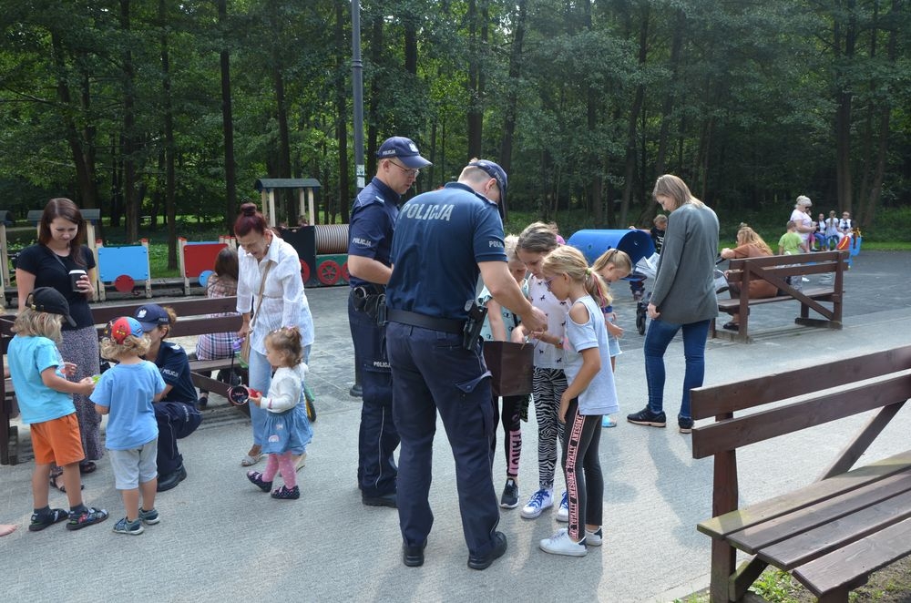 W ramach akcji "Bezpieczna droga do szkoły" oraz "Bezpieczny Powrót z Wakacji" w Parku Miejskim im. Aleksandra Majkowskiego w Wejherowie dzielnicowi wraz z profilaktykiem rozmawiali z dziećmi i ich opiekunami o zasadach poruszania się po drogach oraz wyjaśniali jak ważne są elementy odblaskowe umieszczone na plecaku czy odzieży. Policjanci zachęcali rodziców i opiekunów aby zawsze zwracali uwagę na to aby dzieci miały zawsze przy sobie odblask. Powinien on być umieszczony w taki sposób, aby był widoczny dla kierowców. W trakcie rozmów funkcjonariusze rozdawali wszystkim odblaski.