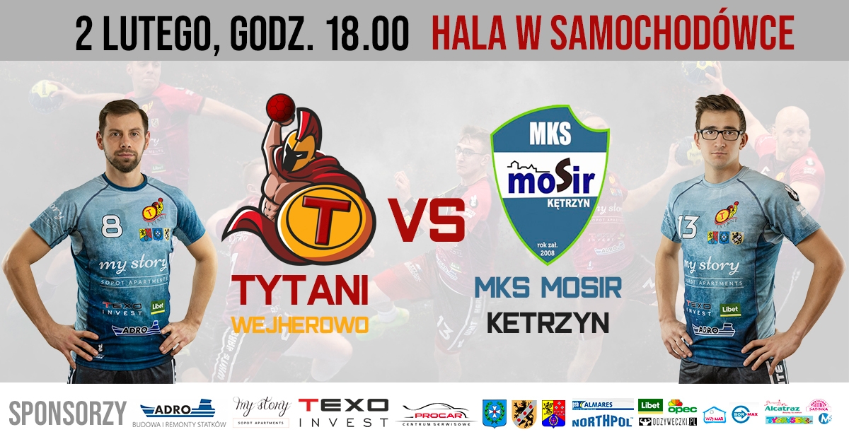 Mecz II ligi piłki ręcznej KS Tytani Wejherowo – MKS MOSiR Kętrzyn odbędzie się w sobotę 2 lutego o godzinie 19:00 w hali sportowej Powiatowego Zespołu Szkół nr 4 w Wejherowie, ul. Sobieskiego 344. Wstęp wolny.