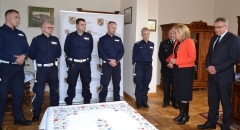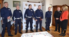 Wczoraj w gabinecie starosty odbyła się kameralna uroczystość wręczenie listów gratulacyjnych i upominków policjantom z KPP w Wejherowie, którzy podczas pożaru na Osiedlu Fenikowskiego w Wejherowie (sierżant Wojciech Bolda i posterunkowy Patryk Nurkowski) oraz akcji ratunkowej w Bożympolu Wielkim (starszy sierżant Wiesław Sychowski, starszy posterunkowy Wojciech Naczke) wykazali się bohaterską postawą i wielką odwagą.