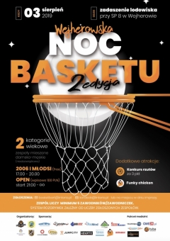 II Wejherowska Noc Basketu odbędzie się w sobotę 3 sierpnia na zadaszonym boisku przy Szkole Podstawowej nr 8 w Wejherowie. Początek imprezy o godzinie 17:00. Pierwsze na boisku zameldują się ekipy rocznika 2006 i młodsi. Rozpoczęcie rozgrywek w kategorii open przewidziane jest na godzinę 21:00 i zakończy się bardzo wczesnym rankiem w niedzielę 4 sierpnia. Ponadto organizatorzy przewidzieli turniej rzutów za 3 pkt.