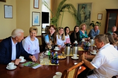 Stałym punktem wizyty są spotkania z lokalnymi władzami. Ukraińskie studentki spotkały się między innymi z prezydentem Wejherowa Krzysztofem Hildebrandtem w ratuszu i starostą Gabrielą Lisius w Starostwie Powiatowym. Rozmawiano głównie o historii Wejherowa i Kaszub, Jakubie Wejherze, powstaniu Kalwarii Wejherowskiej, pracy i współdziałaniu różnych szczebli samorządu w Polsce, zadaniach władz powiatu i władz miasta oraz specyfice społeczno-gospodarczej regionu.