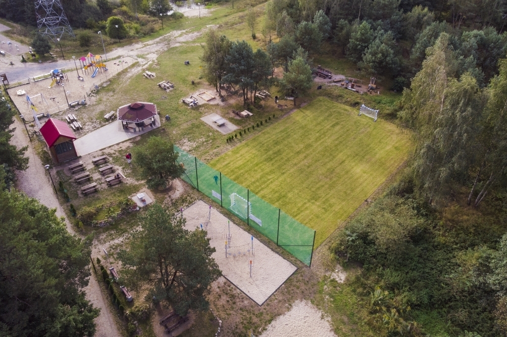 Trzecim elementem, który dopełnia funkcjonalność strefy rekreacyjno-sportowej jest oddany właśnie do użytku park linowy dla najmłodszych oraz boisko piłkarskie z nawierzchnią z naturalnej trawy.