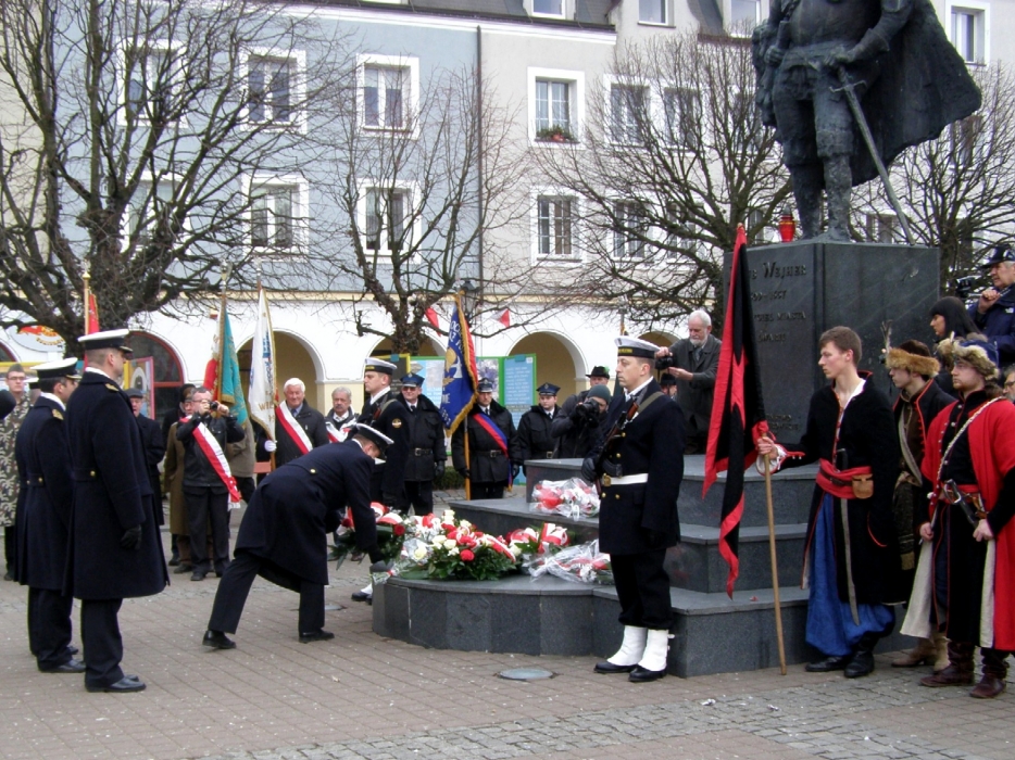 Po mszy przemaszerowano w asyście pocztów sztandarowych i orkiestry dętej na rynek, gdzie delegacje władz państwowych, samorządowych, stowarzyszeń, zrzeszeń, organizacji kombatanckich oraz społecznych złożyli wiązanki kwiatów pod pomnikiem Jakuba Wejhera. Głos zabierali prezydent miasta Krzysztof Hildebrandt oraz prezes Zrzeszenia Kaszubsko-Pomorskiego w Wejherowie Henryk Kanczkowski. Oddano także salwę honorową z muszkietów i samopałów.