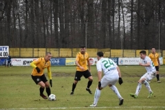 Początek spotkania to przewaga przyjezdnych. Stal, która także znajduje się w strefie spadkowej, wyszła na boisko mocno zmotywowana aby zdobyć pełną pulę punktów. Ataków na bramkę żółto-czarnych nie brakowało. Na szczęście dobrze spisywała się obrona i bramkarz. Zdecydowanie gorzej było w ataku, który praktycznie nie istniał. Przewaga gości była znaczna i tylko kwestą czasu było, aż padną bramki. Pierwsza padła w 25 minucie, strzelcem był Robert Dadok. Stal, zadowolona z przebiegu spotkania zwolniła nieco tempo gry, co natychmiast wykorzystali spychani do tej pory do defensywy gryfici. Nasi piłkarze wreszcie zaczęli śmielej atakować. Gra się wyrównała, a nawet zarysowała się przewaga żółto-czarnych. Cóż z tego, skoro w 42 minucie padła druga bramka dla gości, którą strzelił Michał Fidziukiewicz.