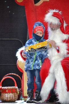 Czekając na przybycie św. Mikołaja najmłodsi podziwiali pokazy cyrkowe, wspólnie się bawili, tańczyli i śpiewali. Mikołaj, w którego tradycyjnie już wcielił się prezydent Krzysztof Hildebrandt, zajechał zabytkowym samochodem i od razu ruszył w tłum oczekujących na niego dzieci, rozdając po drodze cukierki. Na wspólnie wypowiedziane hasło, rozbłysła choinka ustawiona na rynku, po czym Mikołaj wręczał nagrody laureatom konkursu na najładniejsze ozdoby świąteczne.