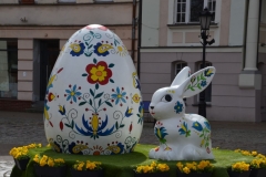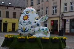Wszystkiemu winien stan epidemiczny i ograniczenia w poruszaniu się. Mega-pisanka od kilkunastu lat nadaje odświętnego charakteru wejherowskiemu rynkowi. Dwumetrowej wysokości jajo jest wykonane z zaprawy cementowej oraz styropianu i waży 160 kg. Towarzyszy mu wielkanocny zajączek. Oba przyozdobione są pięknie wykonanymi kolorowymi wzorami kaszubskimi.