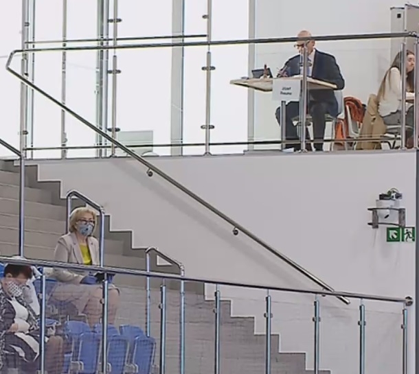 Radni obradowali w hali sportowej Powiatowego Zespołu Szkół nr 4 w Wejherowie, siedząc na trybunie w odległości kilku metrów jeden od drugiego. Na balkonie, z widokiem na wszystkich uczestników obrad, miał swoje miejsce przewodniczący Rady Powiatu, który jednoosobowo prowadził obrady. Inni radni praktycznie nie zabierali głosu. Nawet stanowiska, czy opinie komisji Rady Powiatu nie były prezentowane przez ich szefów, tylko wszystko odczytywał Przewodniczący Rady.