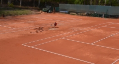 - Aktualnie trwa na nich pracy aby można było z nich korzystać - dodaje Lech Bieńkowski. - Trzeba było przenieść ujęcia wody, wykonać niezbędne prace gruntowe, osadzić słupki siatkowe oraz zakotwiczyć plastykowe linie pól gry. W ciągu najbliższych kilku dni, przy dobrej pogodzie, będzie można doprowadzić je do stanu użytkowania. Trzeba jeszcze wysypać nową mączkę, powbijać linie i rozwiesić siatki.