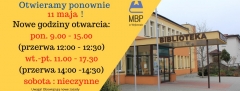 Jednocześnie Miejska Biblioteka Publiczna informuje, że wydłuża do 24 maja termin zwrotu wcześniej wypożyczonych książek który przypadał na okres zamknięcia placówki.