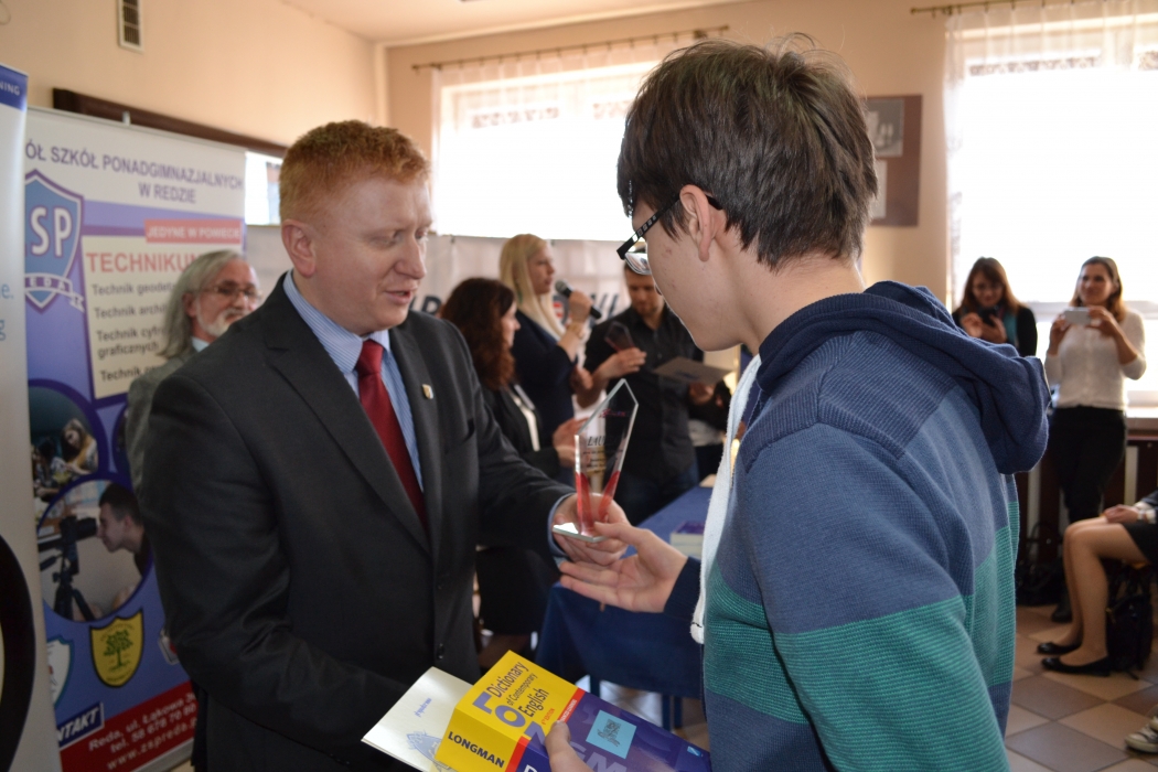 Wszyscy finaliści otrzymali pamiątkowe dyplomy, a zwycięzcy także nagrody. Nagrody wręczali: Członek Zarządu Powiatu Wojciech Rybakowski, Przewodniczący Komisji Edukacji Rady Powiatu - Ludwik Zegzuła, Wiceprzewodniczący Komisji Edukacji Rady Powiatu - Zbigniew Chuchała, Dyrektor ZSP w Redzie - Rafał Maliszewski.