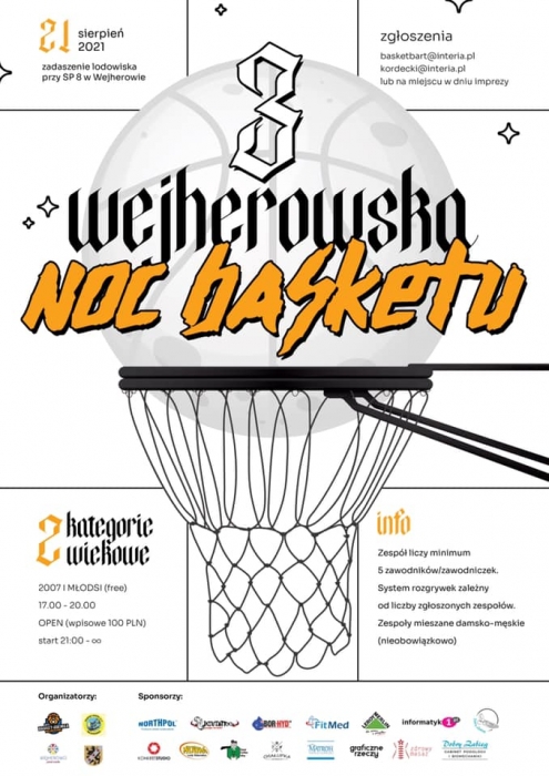 III Wejherowska Noc Basketu odbędzie się w sobotę 21 sierpnia na zadaszonym boisku/lodowisku przy Szkole Podstawowej nr 8, przy ul. Nanickiej 22.