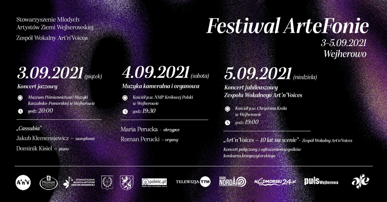 Festiwal ArtFonie odbędzie się w Wejherowie w dniach 3 – 5 września br. W ramach imprezy odbędą się trzy różne koncerty, w trzech różnych miejscach: