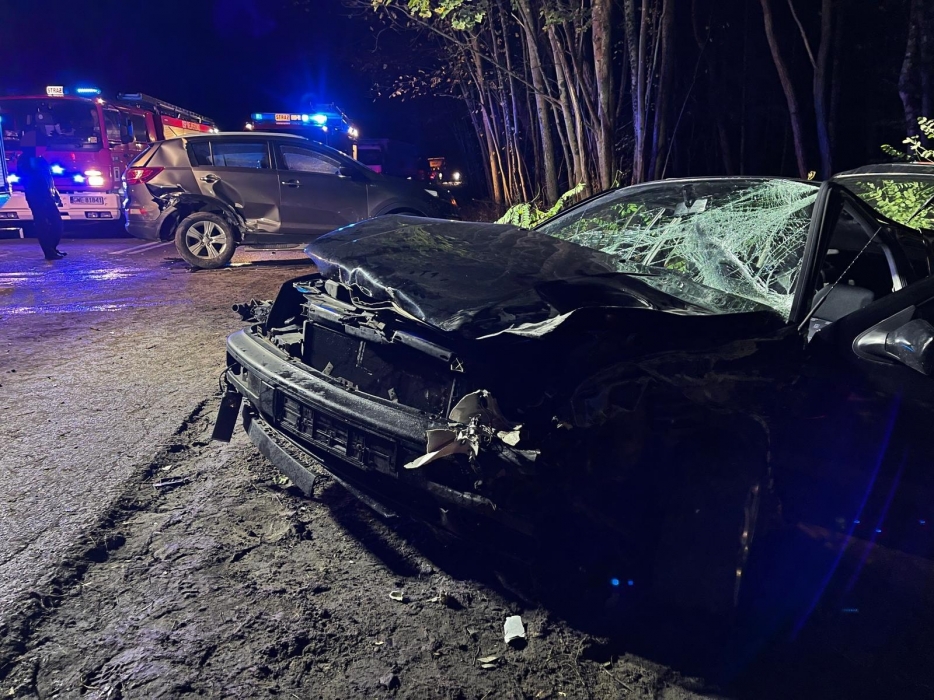 Kilka zastępów strażaków, Zespół Ratownictwa Medycznego i Policja zostali zadysponowani wczoraj po południu do wypadku drogowego na skrzyżowaniu drogi wojewódzkiej nr 218 (Wejherowo - Piaśnica) z drogą na Kąpino. Zderzyły się dwa samochody osobowe.
