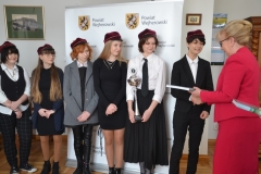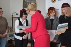 We środę, 20 kwietnia, zwycięska ekipa w składzie: Zuzanna Brzezińska, Maja Sikorska, Julia Łuniewska, Oliwia Jasnowska, Zuzanna Wojtowicz, Małgorzata Różańska, przybyła do Starostwa Powiatowego na zaproszenie starosty Gabrieli Lisius, która serdecznie pogratulowała dziewczętom wspaniałego sukcesu oraz wręczyła listy gratulacyjne i drobne upominki. W trakcie rozmowy zadeklarowała jednocześnie finansowe wsparcie w opłacenie wyjazdu do USA, na Finał Światowy Odysei Umysłu.