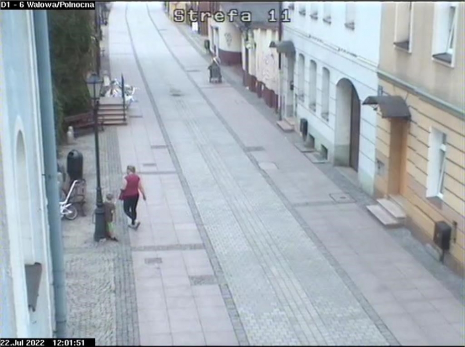 Rejon ten znajduje się pod obserwacją monitoringu miejskiego, dlatego dyżurny Straży Miejskiej przyjrzał zapis kamery rejestrującej obraz z ul. Wałowej. Na nagraniu zauważono idącą ulicą kobietę z małym dzieckiem, która zainteresowała się stojącym rowerkiem. Po chwili podeszła do niego, posadziło dziecko na siodełko i jak gdyby nigdy nic, oddaliła się z dzieckiem w kierunku parku Cedron. Kobiecie wydawało się że nie ma świadków kradzieży. Działał jednak monitoring miejski, który zarejestrował to zdarzenie oraz bardzo wyraźnie sfotografował twarz złodziejki.