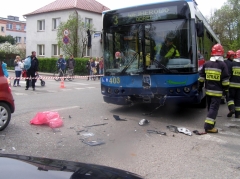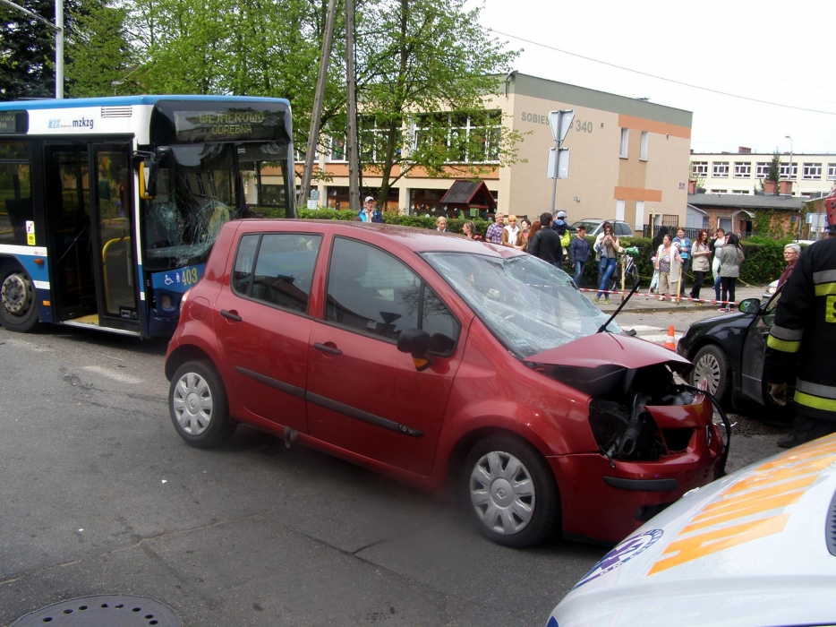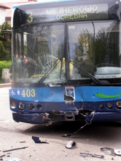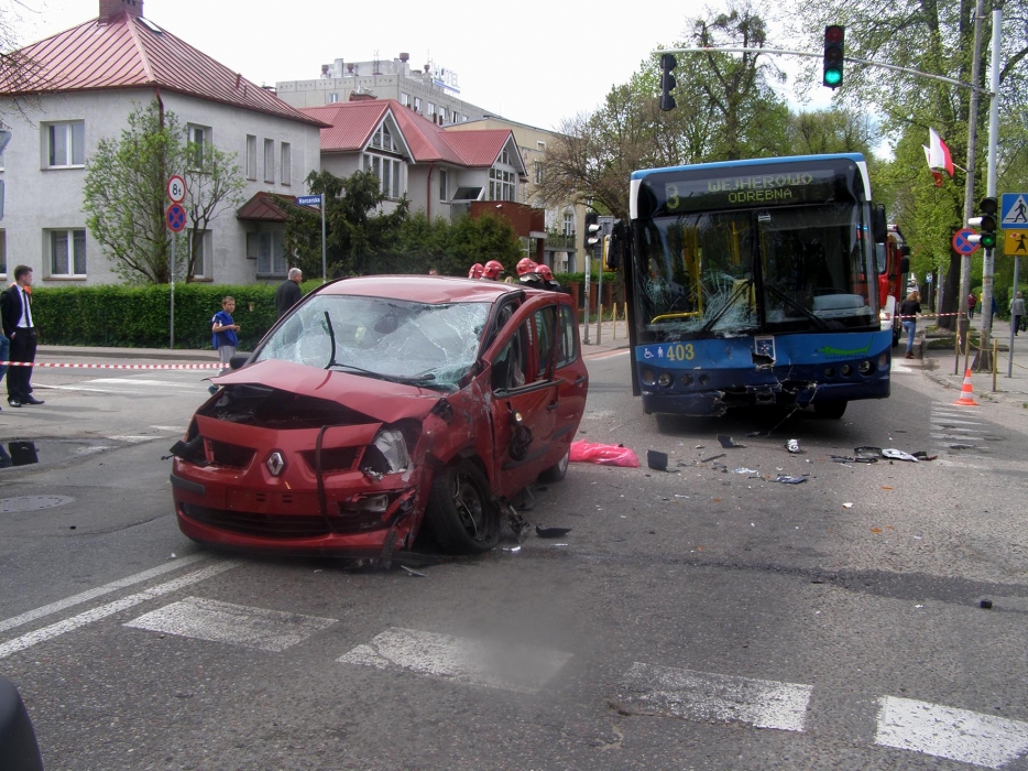 Dziś 6 maja około godz. 12:30 doszło do wypadku na skrzyżowaniu ul. Sobieskiego z ul. Harcerską. Wyjeżdżający z ul. Harcerskiej samochód osobowy marki Renault Modus wpadł po jadący ul. Sobieskiego z kierunku Bolszewa autobus MZK linii nr 3, którym jechało ponad 20 osób. Wskutek zderzenia 4 osoby – dwóch mężczyzn, kobieta i 14-letnia dziewczyna - odniosły obrażenia i przetransportowane zostały do wejherowskiego szpitala. Dwoje rannych jechało autobusem, a dwoje samochodem osobowym. Oba pojazdy doznały uszkodzeń, w tym „renówka” dość poważnych.