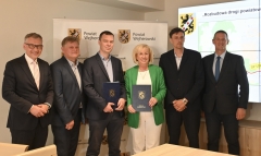 Wczoraj w Starostwie Powiatowym podpisano umowę na wykonanie dokumentacji projektowej dotyczącej przebudowy drogi powiatowej nr 1336G na odcinku od mostu w miejscowości Dąbrówka Młyn do skrzyżowania z ul. Jeziorną w Gowinie. Przebudowa drogi zakłada m.in. wykonanie na całej jej długości bezpiecznego ciągu pieszo-rowerowego w raz z oświetleniem oraz doświetlenie przejść dla pieszych. Wybudowane zostaną także zatoki autobusowe w miejscach już istniejących oraz ewentualne nowe przystanki.