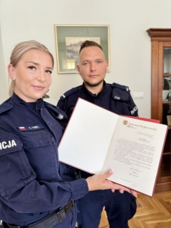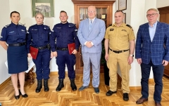 Za ich odwagę i bohaterską postawę, dzięki której uratowano mienie znacznych rozmiarów, w czwartek 4 lipca starosta Marcin Kaczmarek wręczył obu funkcjonariuszom wyróżnienia.